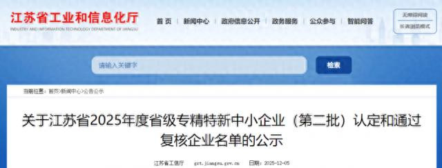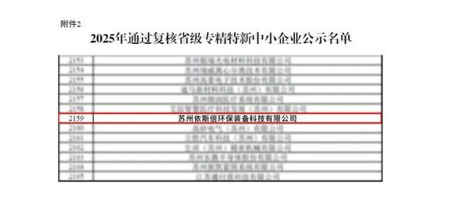 近日,江苏省工业和信息化厅公示了2025年度省级专精特新中小企业(第二批)认定及2022年度省级专精特新中小企业复核末端。苏州依斯倍环保装备科技有限公司凭借在工业废水惩办深度回用与资源化运用畛域的技艺窜改才略、市集竞争力和行业影响力,得胜通过复核,再次被认定为“省级专精特新中小企业”。这标识着企业在专科化、紧密化、特色化、新颖化发展方面取得新进展,也体现了企业历久深耕废水惩办环保畛域所获恶果的握续认同。