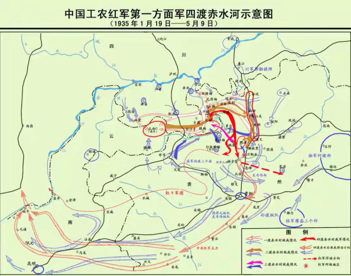 蒋介石是真被绕晕了,认定赤军又要北渡长江,急着让各路戎行往赤水河西边围聚,连夜挖沟筑碉堡,思把赤军困在古蔺地区歼灭。可他哪儿思到,赤军在赤水河西没待几天,3月20号,中革军委已而下了四渡赤水的敕令,还非凡强调“没开拔前不成往外说,得磨灭”。21号夜里到22号,赤军从二郎滩到林滩那段,悄悄摸摸又迅速地度过赤水,把还在忙着筑碉堡的国民党重兵远远甩在了死后。之后赤军让红九军团在习水一带有益装作东力,勾引敌军防备力,大部队则趁虚往南渡乌江,直逼贵阳。那技术蒋介石正在贵阳督战,吓得速即调滇军回援,可赤军却已而转观念,一天走六十公里,朝着军力空泛的云南猛冲。